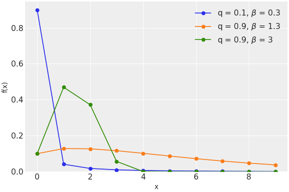\[f(x \mid q, \beta) = q^{x^{\beta}} - q^{(x + 1)^{\beta}}\]